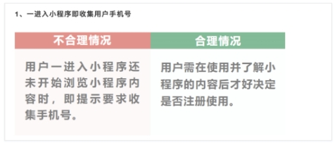 2、不得在小程序內瀏覽時(shí)收集用戶(hù)手機號。