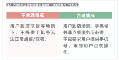 1)小程序到店點(diǎn)餐/取餐業(yè)務(wù)場(chǎng)景下不得強制收集用戶(hù)手機號 。