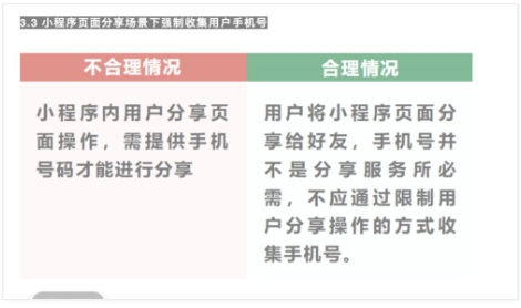 3)小程序頁(yè)面不得在分享場(chǎng)景下強制收集用戶(hù)手機號。