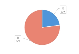 從圖中可以看到,顧客中女性占總體的 77%,是男性的 3.3 倍。