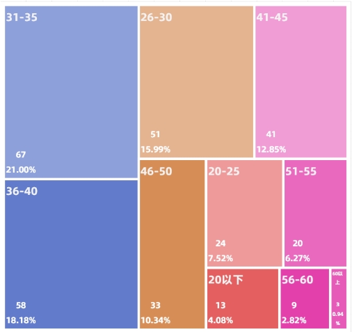 用樹(shù)狀圖分析各年齡段的占比: