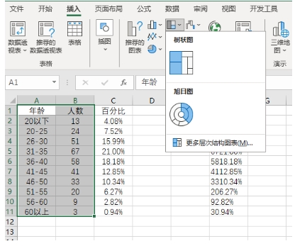 選中 A1:B11,插入樹(shù)狀圖: