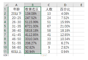 因此,處理方式也差不多,也能選擇簡(jiǎn)單的柱形圖來(lái)展現,或配合性別等元素進(jìn)行分析。