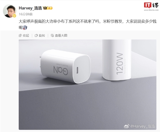 小米官方人員公布了一款 120W 大功率的小布丁系列氮化鎵充電器,將在米粉節(4 月 6 日)首發(fā),配有 USB-C 接口。