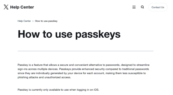 X(推特)通過(guò)官方安全網(wǎng)頁(yè)宣布,面向全球范圍內的 iOS 用戶(hù)推出通行密鑰(Passkey)登錄功能。