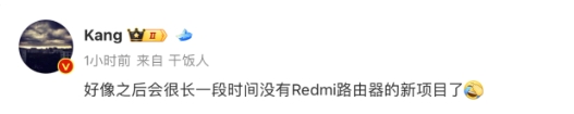 在博主 @Kang 的評論區里,認證為小米中國區智能硬件市場(chǎng)負責人 @Selen7 回復網(wǎng)友評論稱(chēng),以后沒(méi) Redmi 品牌的路由器了。