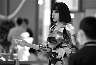 在第七屆數字中國建設峰會(huì )現場(chǎng)體驗區,超仿生人形機器人“小柒”在向觀(guān)眾致意。新華社記者 魏培全 攝