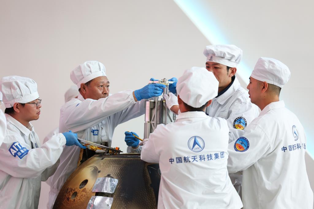6月26日下午,科研人員對嫦娥六號返回器進(jìn)行開(kāi)艙,檢驗關(guān)鍵技術(shù)指標完成情況。新華社記者 金立旺 攝