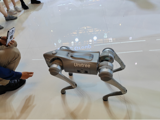 一家科技公司展臺上的一只機器狗,熟練地與周?chē)^(guān)眾互動(dòng)。和我們以往在視頻短片中看到的用于技術(shù)和性能演示的機器狗不同,這款產(chǎn)品是已經(jīng)正式在網(wǎng)上銷(xiāo)售,主打仿生陪伴功能的機器狗。
