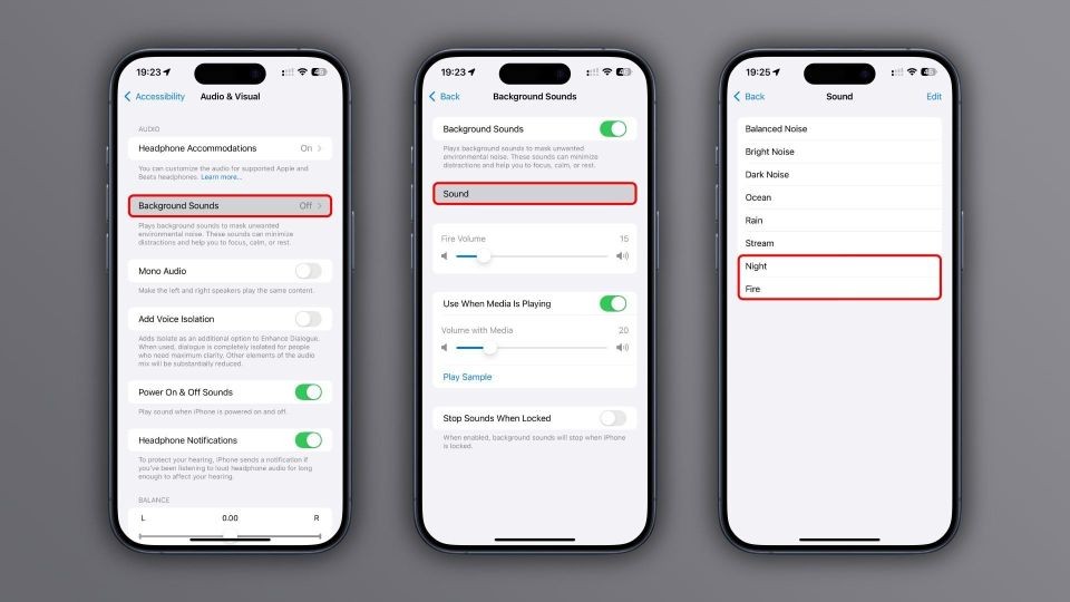 IT之家 7 月 11 日消息,蘋(píng)果公司在 iOS 18 系統中引入了 Night 和 Fire 兩個(gè)新的背景音,幫助用戶(hù)集中注意力,或者更快更好地休息。