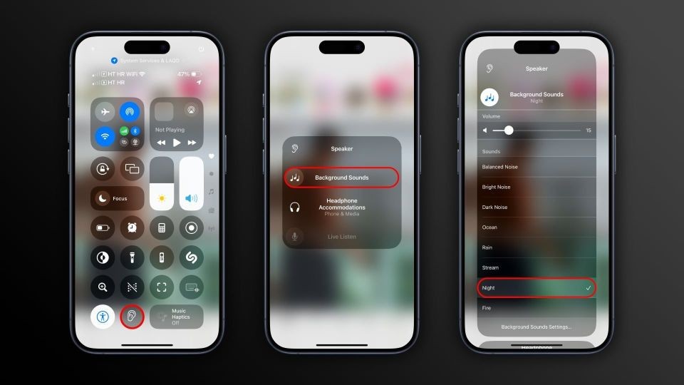 用戶(hù)前往“設置” >“輔助功能”>“音頻與視覺(jué)”>“背景音”,然后打開(kāi)“背景音”,用戶(hù)也可以點(diǎn)擊通過(guò)輕點(diǎn)控制中心中的“助聽(tīng)設備”按鈕,來(lái)快速訪(fǎng)問(wèn)“背景音”。