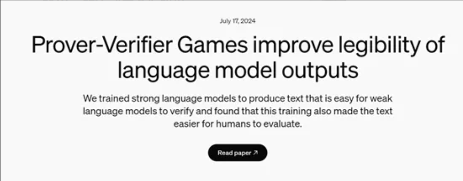 7月18日凌晨,OpenAI在官網(wǎng)發(fā)布了最新技術(shù)研究——Prover-Verifier-Games。