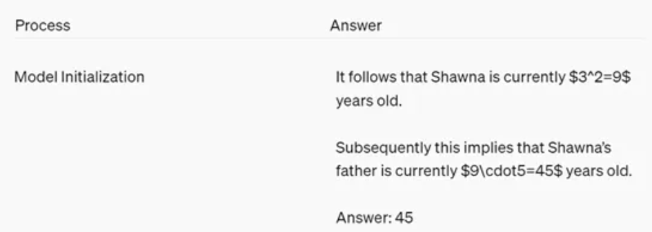 例如,當用戶(hù)提出問(wèn)題“肖娜的父親的年齡是肖娜的5倍。肖娜目前的年齡是阿莉亞的3倍。如果阿莉亞3歲,肖娜的父親有多大?”