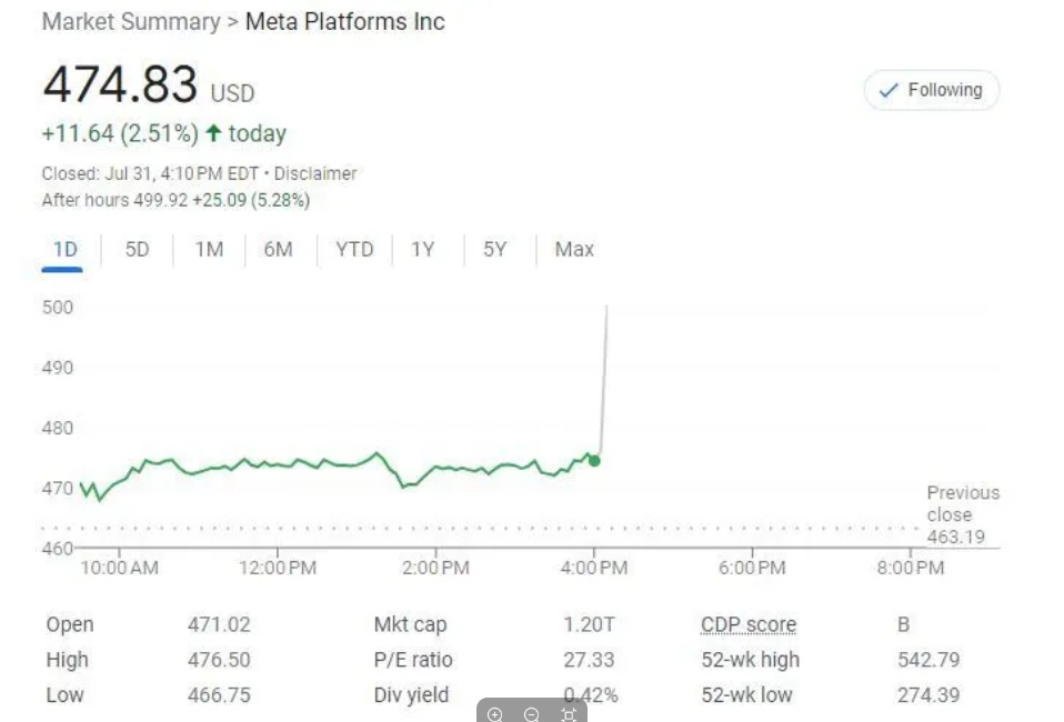 Meta二季報和下季指引超預期,沒(méi)再增加全年資本支出上限,盤(pán)后漲5%